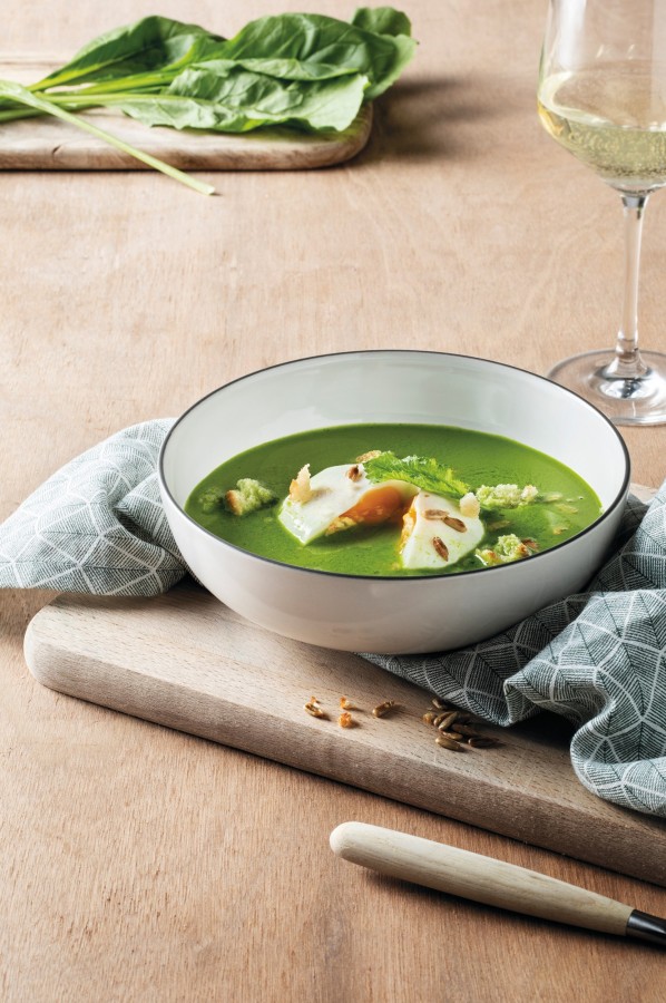 Raapstelen hot smoothie met gepocheerd ei