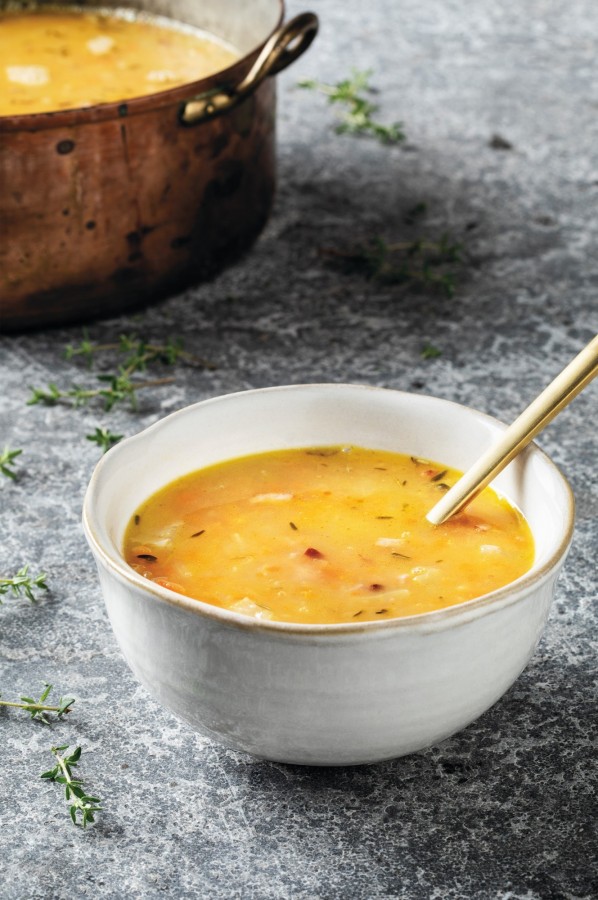 Voeg om de soep steviger te maken een klein potje witte bonen toe. Je kunt dan eventueel de spekjes weglaten.