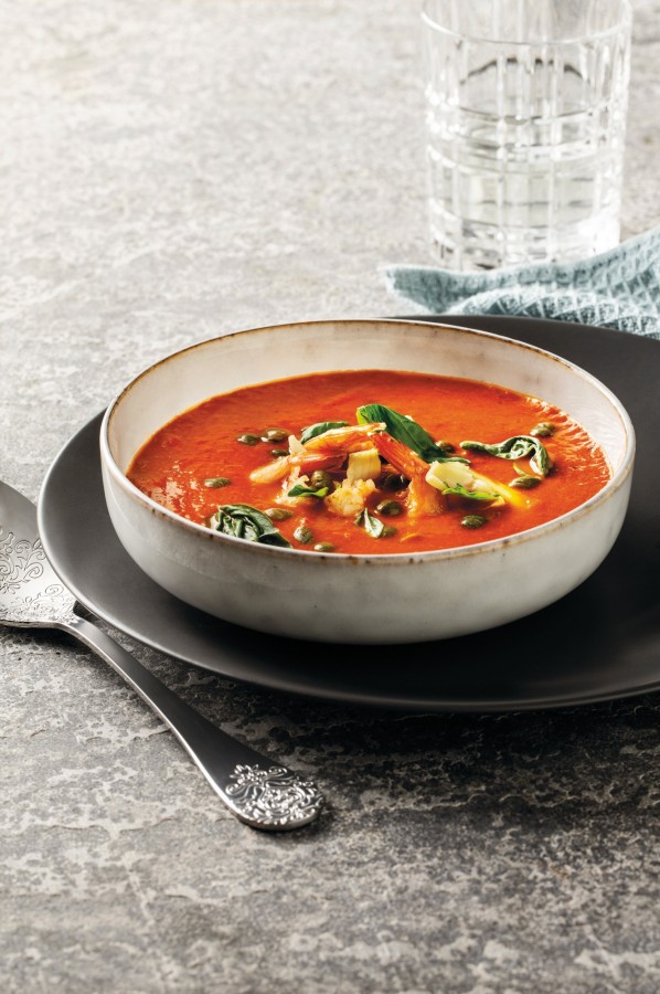 Ook lekker met rivierkreeftjes in plaats van gamba's.