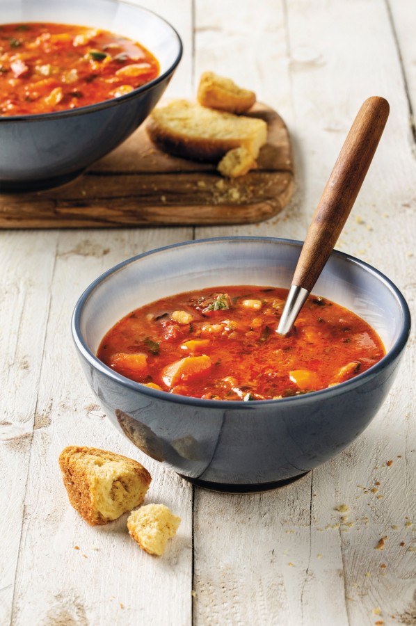 Lekker met stokbrood en hummus voor een stevige lunch of serveer als maaltijdsoep.